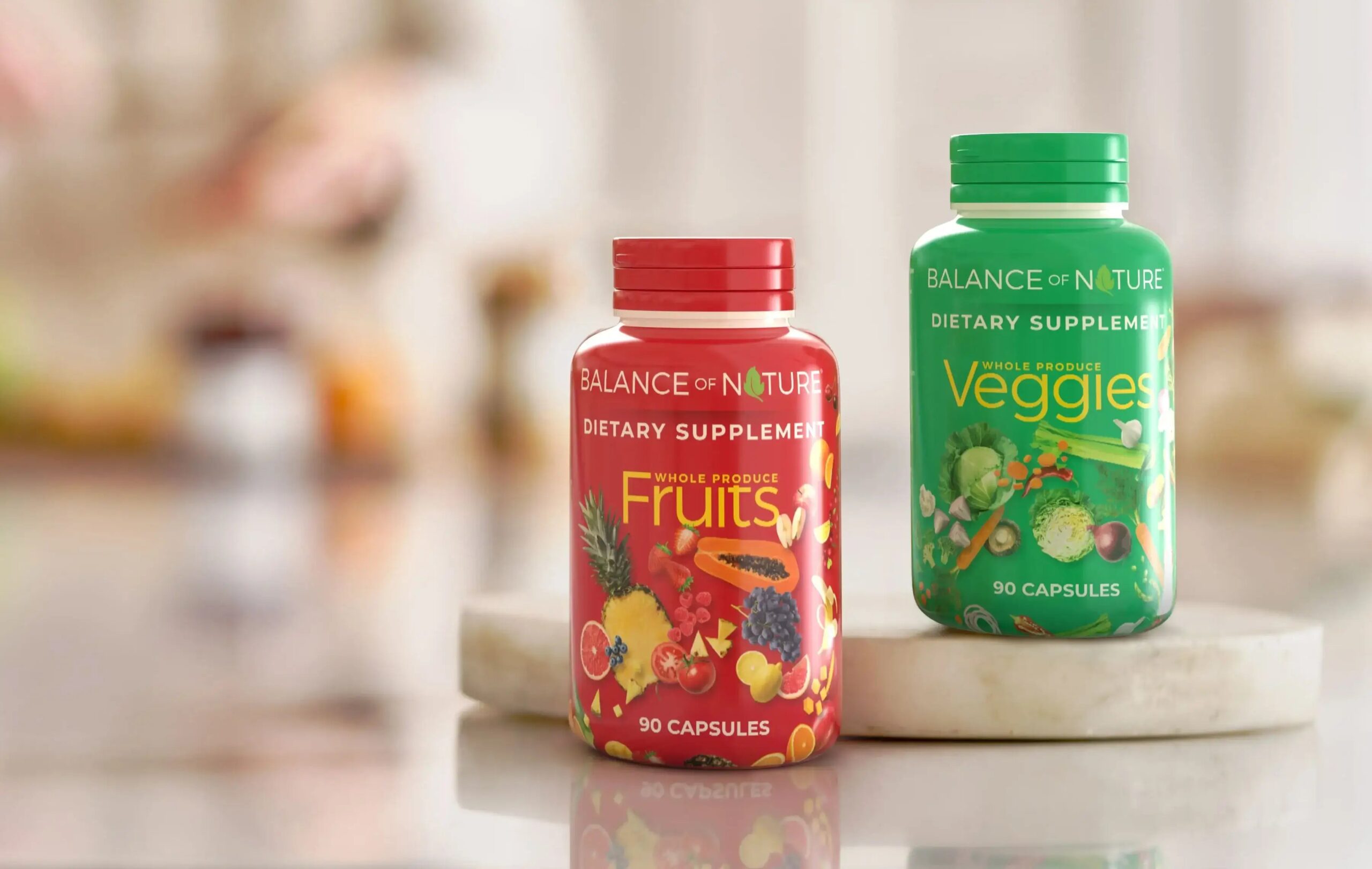 Ingredients from Fruits and Vegetables: Balance of Nature Fruits & Veggies supplements have no binders, additives, or added fillers. The only ingredients in our supplements are whole fruits and vegetables.
